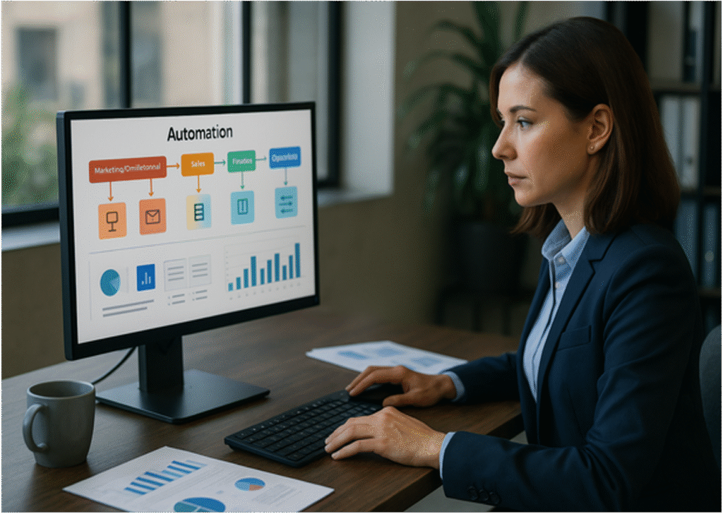 Diseñar, orquestar y operar automatizaciones entre apps encadenando disparadores, módulos, transformaciones, ramificaciones/routers, iteradores/agregadores, y acciones para diferentes servicios.